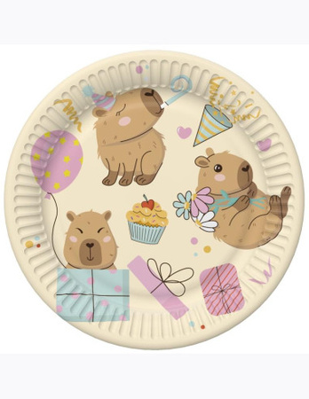 Talerzyki papierowe "Urodzinowe Kapibary", 18 cm, 8 szt