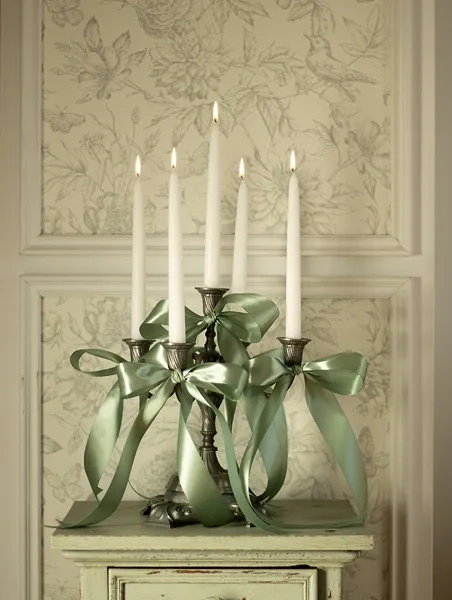 - Tasiemka satynowa w kolorze szałwiowym, szerokość 38 milimetry, długość 25 metrów.
