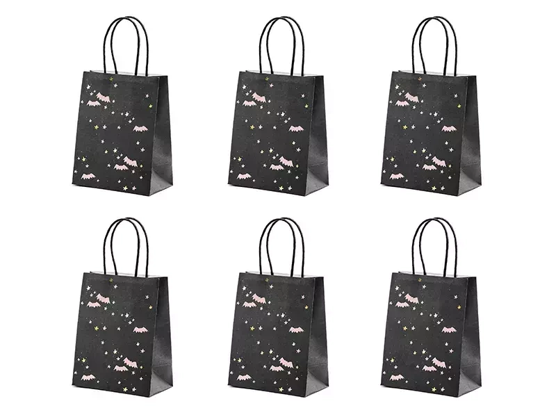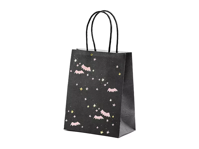 - Torebka na prezent w kolorze czarnym z różowo-złotym nadrukiem,