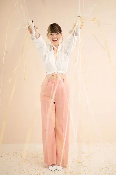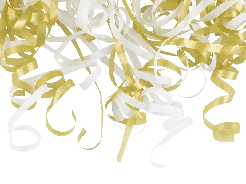 - Tuba manualna z serpentynami o długości ok. 6 m w kolorze białym i złotym, długość ok. 25 cm.