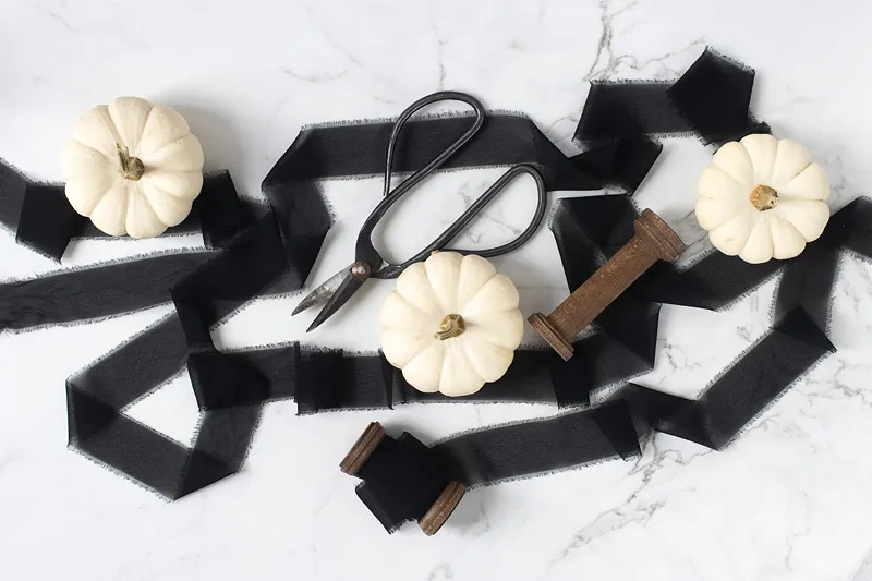 • Wstążka szyfonowa w kolorze czarnym, szerokość ok. 40 mm, długość ok. 10 m.