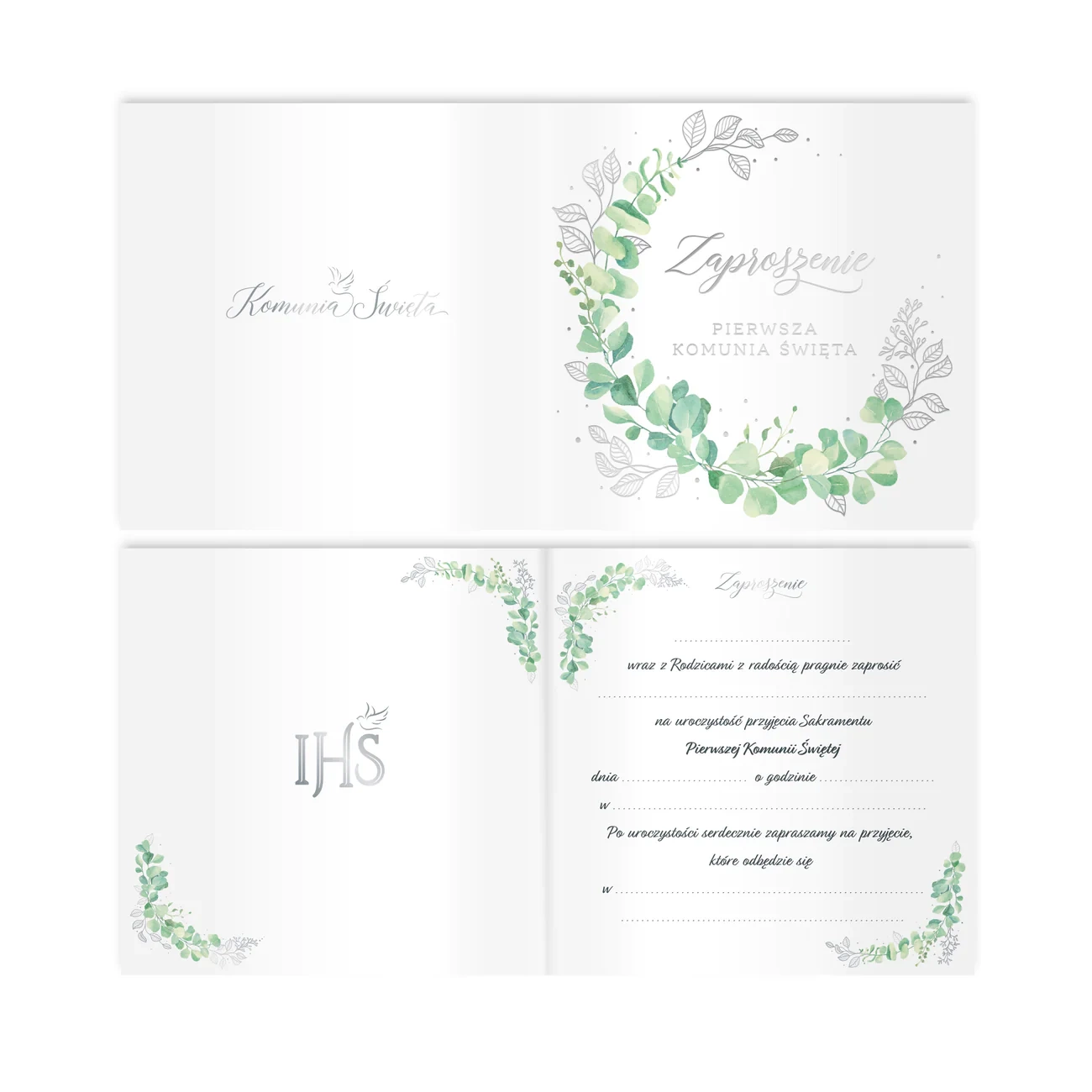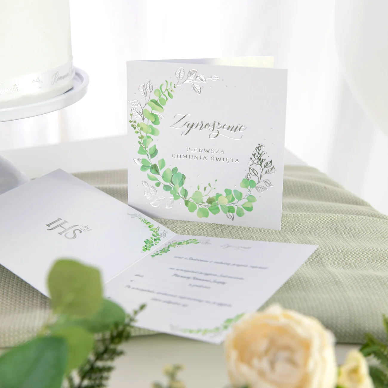 Zaproszenie na komunię Eukaliptus srebrny 10szt.