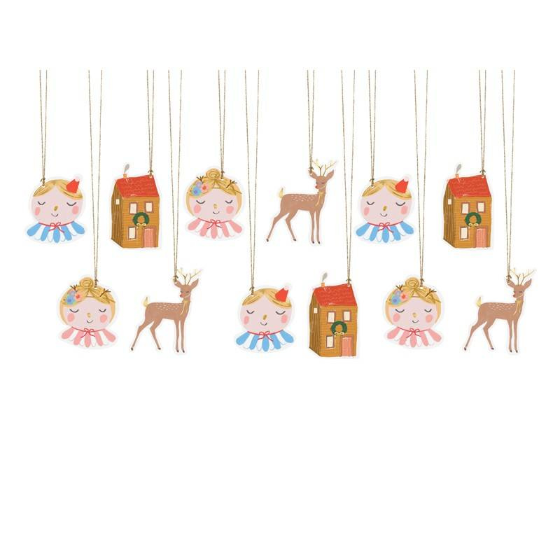 - Komplet zawieszek z motywem świątecznym do pakowania prezentów.
