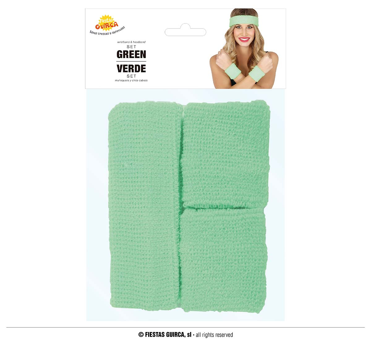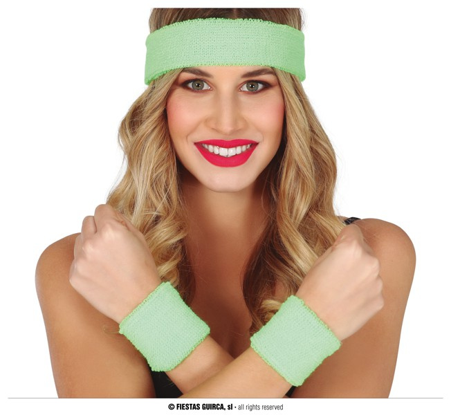 - Zestaw zielonych opasek : 1 szt - opaska na głowę , 2 opaski na nadgarstki