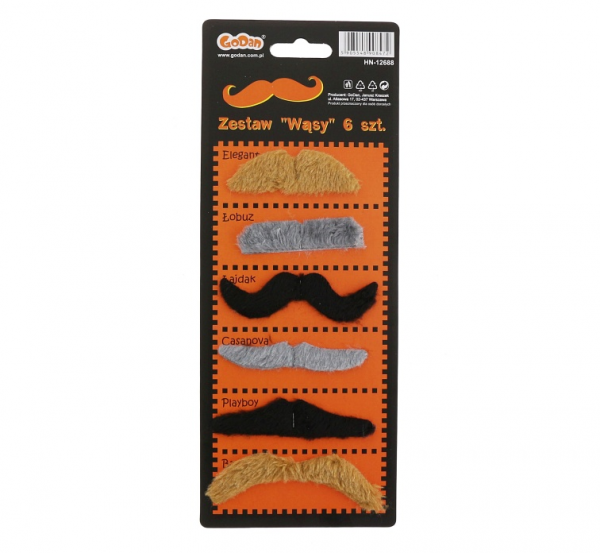 - Zestaw zawiera 6 szt. wąsów mocowanych na taśmę: